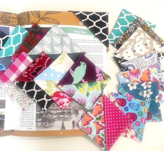 Marque page en coton - floral/pois