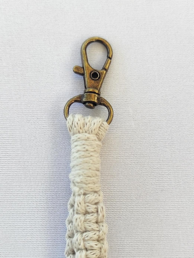 Le porte clé en macramé a été tissé à la main,