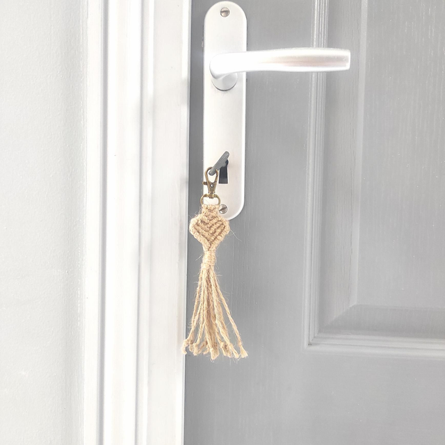 Le porte clé en macramé a été tissé à la main,