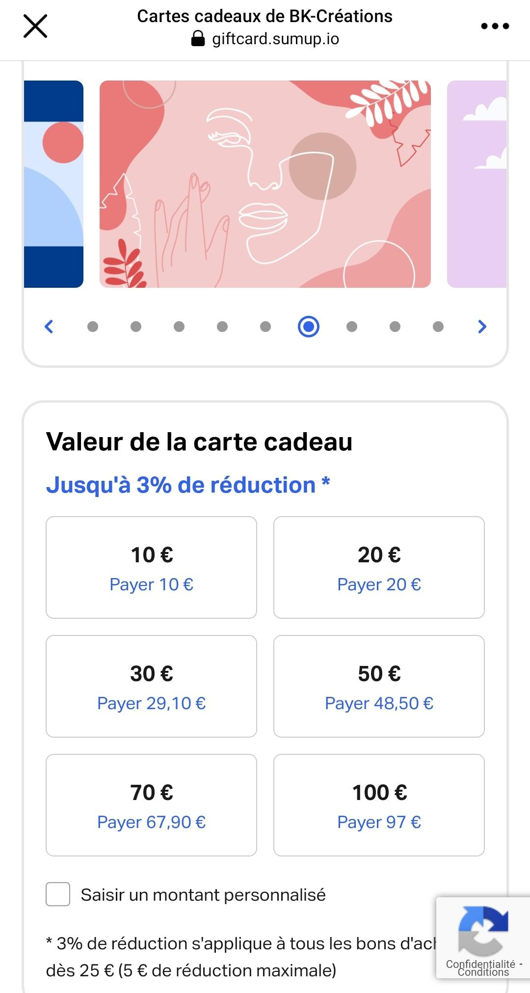 Petite surprise pour vous qui offrez la carte >>> 3% de réduction sur l'achat des cartes cadeaux valable dès 25€ d'achat (dans le limite de 5€ maximum)